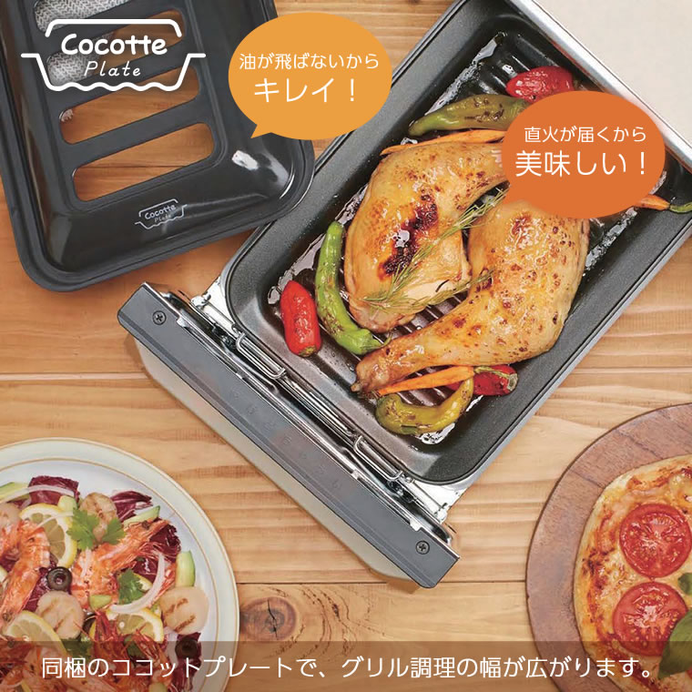 直火が届くスリット蓋付きグリルプレート「ココットプレート」を同梱。